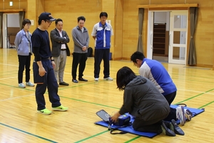30団体55名が参加し、防火管理の基本となる初期消火、避難誘導及び応急処置について確認していただきました。