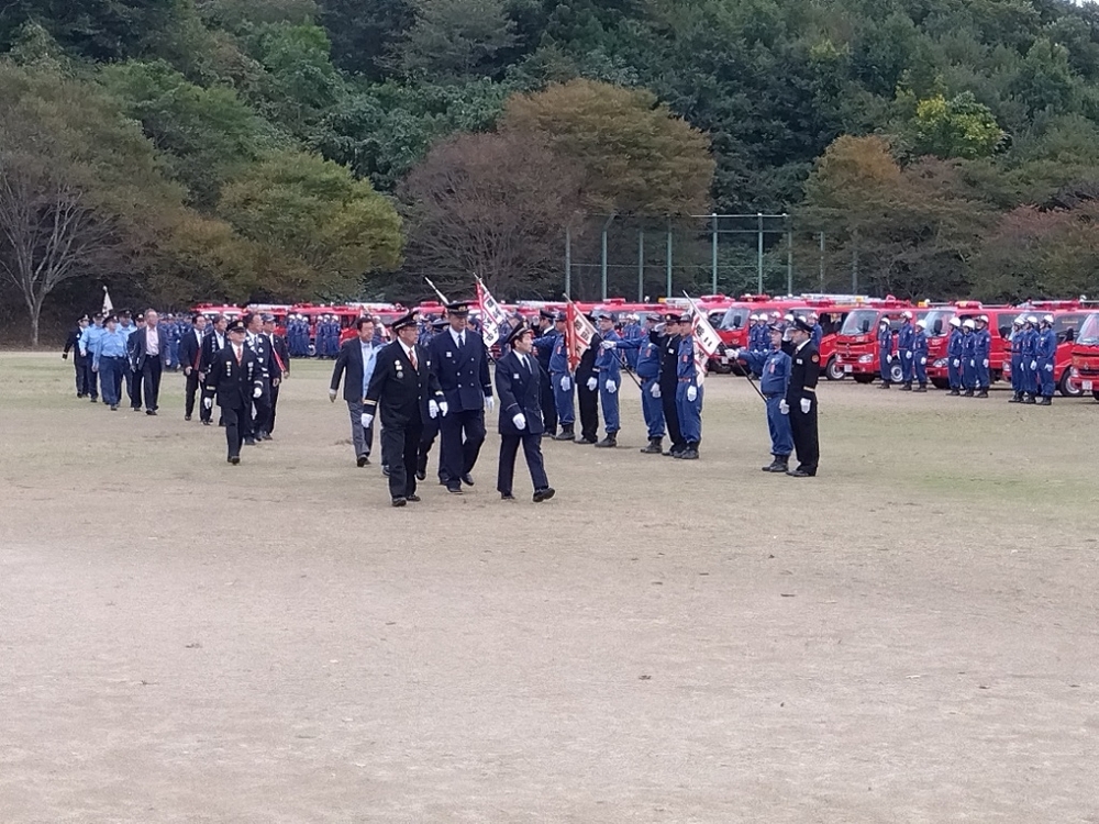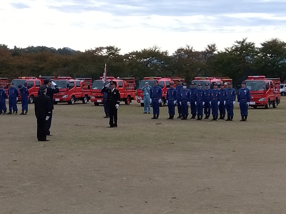 10月19日(日曜日)中田スポーツ広場で、郡山市消防団中田地区隊及び田村地区隊による秋季合同検閲式が行われました。