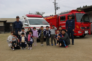 避難訓練や消防車の見学を行った後、質問コーナーでは園児たちからたくさんの質問が飛び交い、火災予防の大切さや消防に対する理解を深めていただきました。