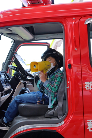 街頭活動では住宅用火災警報器の設置促進をするとともに、はしご車とポンプ車の車両展示を行い、多くの方に来場していただきました。