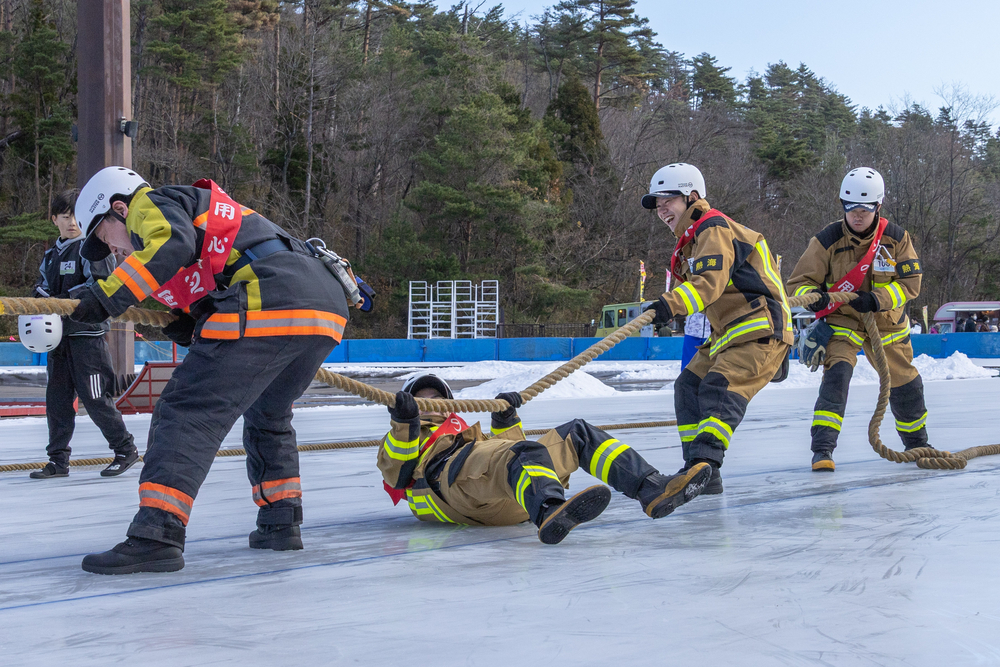 火まもり君と共に消防コーナーを設け、火災予防を啓発するとともに、熱海分署で氷上綱引大会に参加し、地域の皆さんとの交流を深めました。