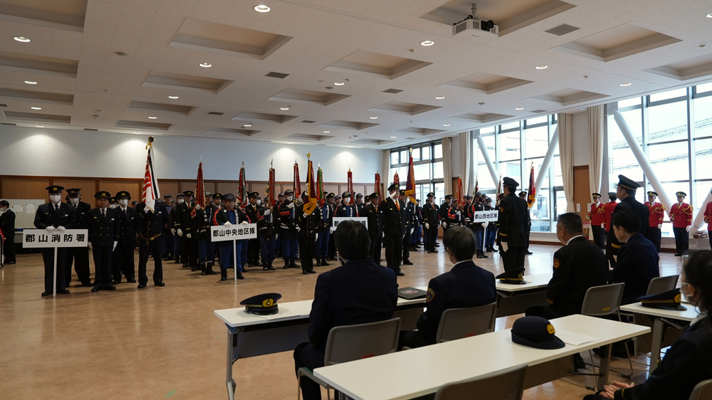 郡山市消防団郡山中央地区隊・郡山東地区隊・郡山西地区隊のほか、郡山消防署及び関係機関が参加し、士気の高揚と火災予防の意識の向上を図りました。
