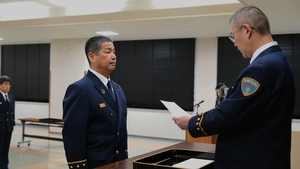 4月1日(水)消防本部で幹部職員に対する辞令交付式を行いました。