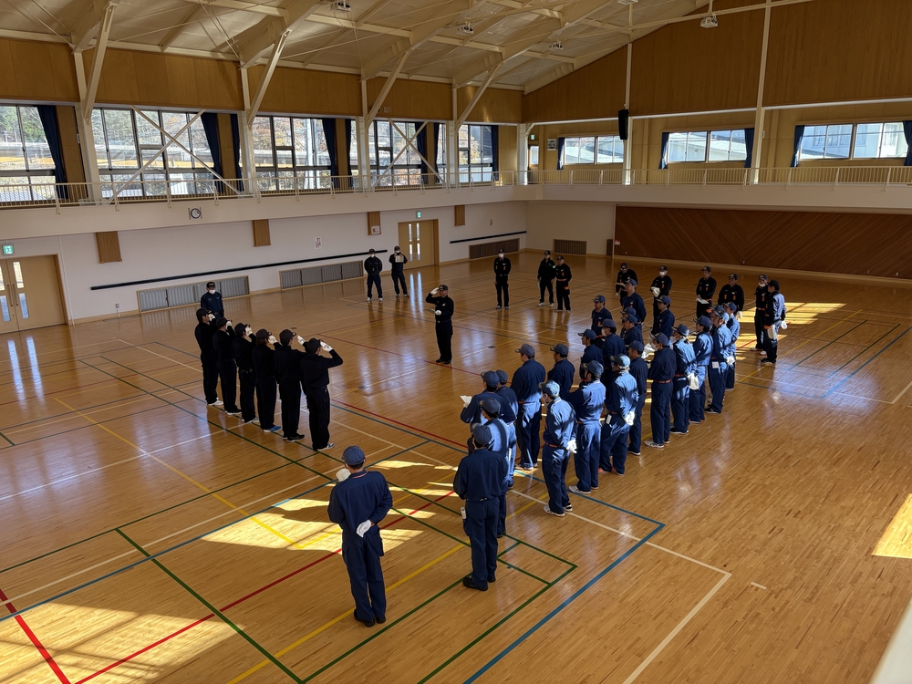 令和7年11月16日(日)、都路町古道体育館において、田村市消防団都路地区隊と規律訓練及び車両点検要領の確認を実施しました。