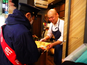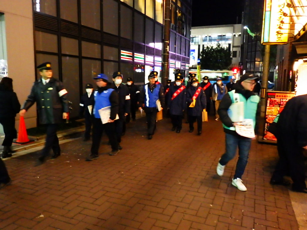 12月10日(水)郡山駅前陣屋地区で、年末年始火災予防運動を前に、郡山警察署と合同で郡山駅前パトロールを実施し、飲食店や物販店などに対する火災予防の啓発を行いました。